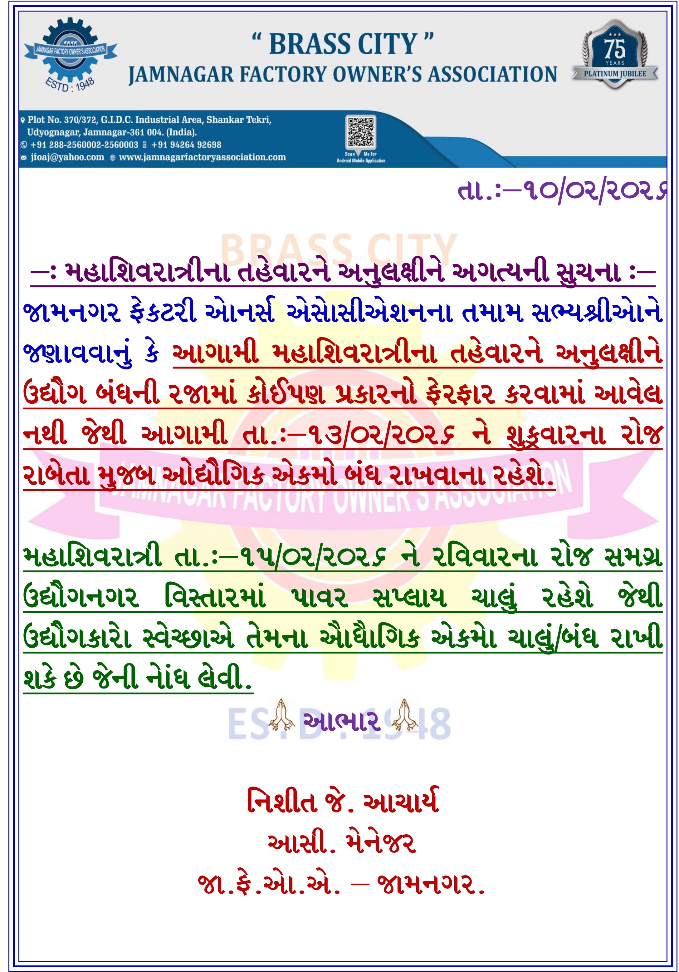 | 2026-02-10 | Mahashivratri Staggering No Change |
